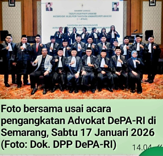 Siaran pers DePA-RI, Sabtu (17/1) menyebutkan, pernyataan itu dikemukakan Luthfi Yazid pada acara Pengangkatan Advokat DePA-RI yang dirangkaikan dengan Forum Diskusi “Advokat dalam transisi hukum nasional: Kesiapan Advokat DePA-RI menghadapi Pemberlakuan_+