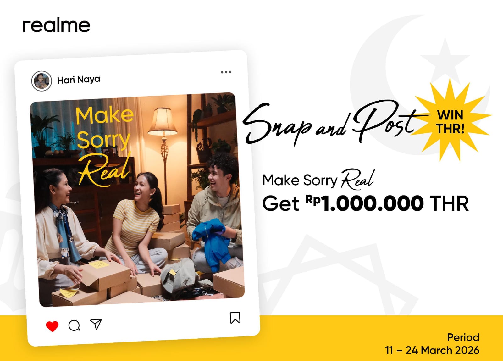 realme turut mengadakan kompetisi #MakeSorryReal, mendorong anak muda membagikan momen permintaan maaf dengan hadiah ratusan juta rupiah.