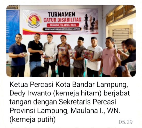 Lampung DIFa TV – Pengurus Provinsi (Pengprov) Percasi Lampung mendukung penuh pelaksanaan Turnamen Catur Disabilitas yang digelar Pengurus Kota (Pengkot) Percasi Bandar Lampung sebagai upaya mendorong pembinaan olahraga inklusif.