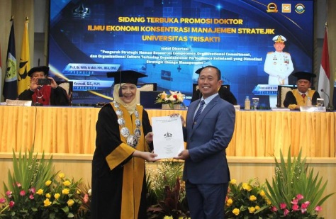 Keberhasilan Laksamana Muda TNI Hudiarto meraih Doktor dengan predikat Cumlaude menjadi bukti nyata keunggulan Program Doktor Ilmu Ekonomi FEB Usakti dalam mengakomodasi keunikan setiap mahasiswa.