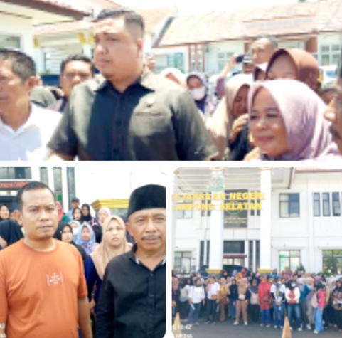 Dibawah terik matahari di halaman gedung Kejaksaan Negeri (Kejari) Lampung Selatan, Yudi (39) warga Desa Trimulyo, Kecamatan Tanjung Bintang menyatakan, ratusan masyarakat yang berkumpul ini guna meminta keadilan bagi anggota dewan yang terpilih dari partai berjuluk moncong putih dari dapil VI yang meliputi Kecamatan Merbau Mataram, Tanjung Bintang dan Tanjungsari.